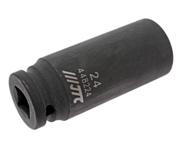Головка торцевая 1/2” 24 ударная высокая L=82мм JTC 448224 - это компактное ручное приспособление, которое используется для демонтажа различного крепежа, соединяющего конструктивные элементы легкового и грузового транспорта. Также подходит для машин и механизмов, используемых в промышленности, сельском хозяйстве и др. сферах. Данная модель применяется совместно с гаечным ключом или воротком на 1/2"х24 мм. Материал головки - высокопрочная хром-молибденовая сталь.