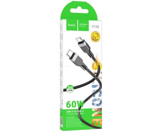 Кабель HOCO X109/ PD Type-C-Type-C/3m/ 60W/ Силикон/ Черный