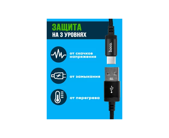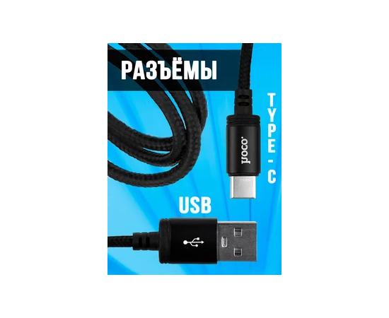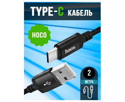 Кабель HOCO X14/ USB Type-C/ 2m/ 1.7A/ Нейлон/ Черный