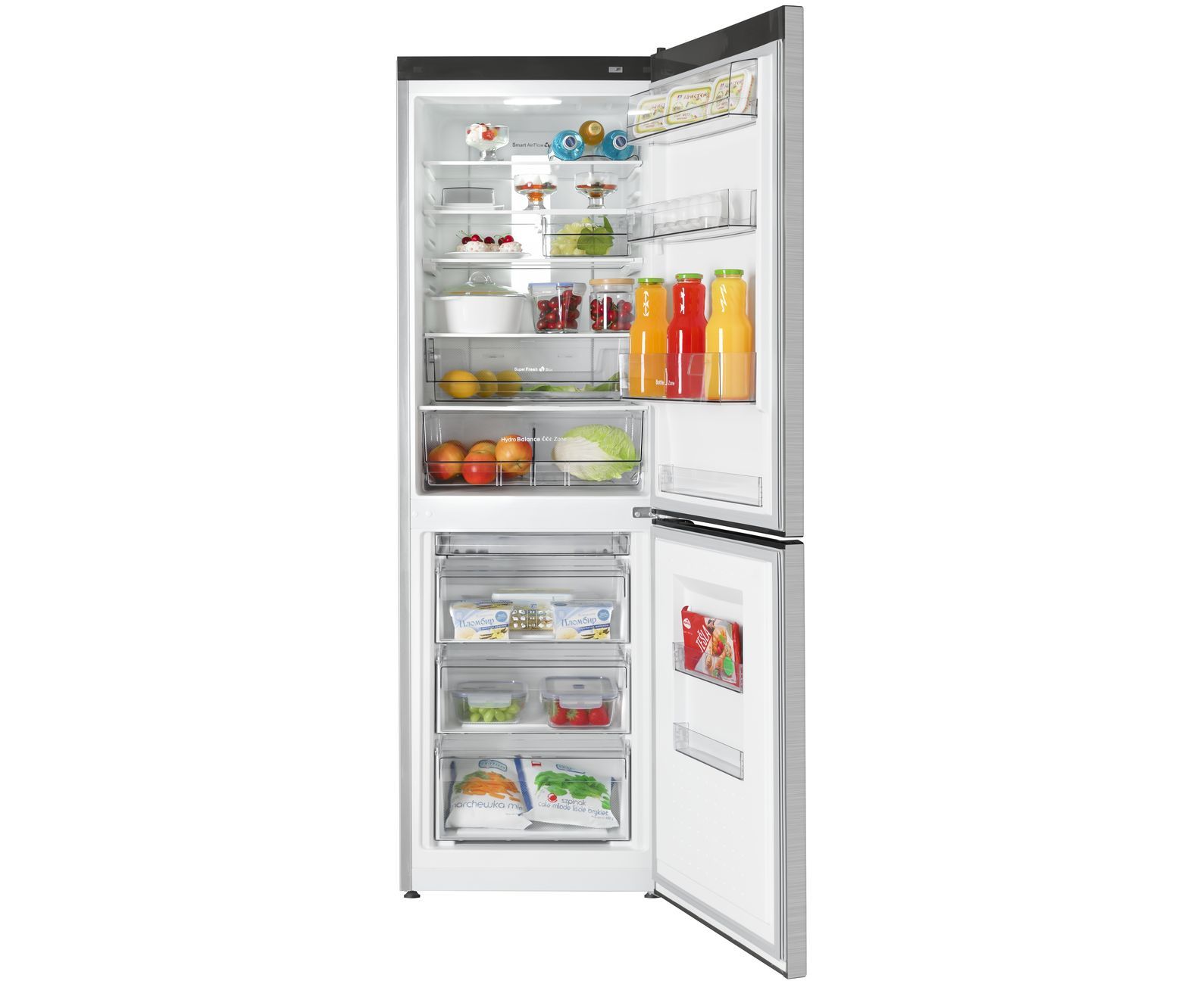 LED-освещение, масленка, складная полка, самодиагностика, отделение с контролируемой влажностью, доводчик двери, экономичный режим, охлаждение напитков