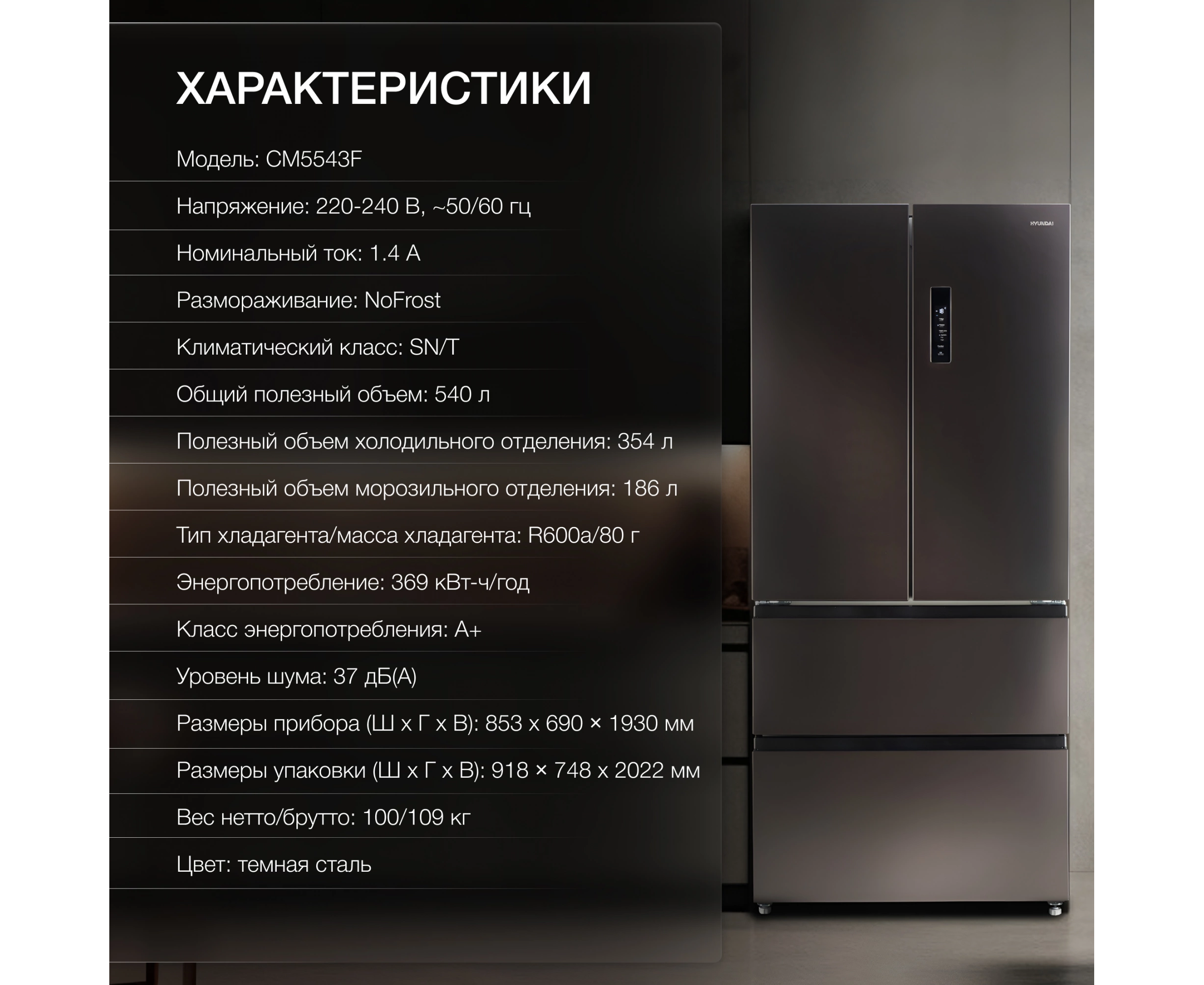 Холодильник Hyundai CM55043F черная сталь