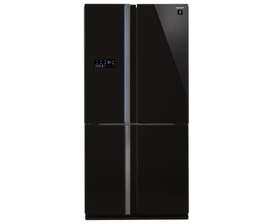 Холодильник Sharp SJ-FS97VBK, черное стекло, Side-by-Side, 183х90х77см, вес 120кг, класс А++, климат класс: SN-T, объем холод камеры 393л, объем мороз камеры 207л, No Frost, 37дБ, производство - Таиланд.