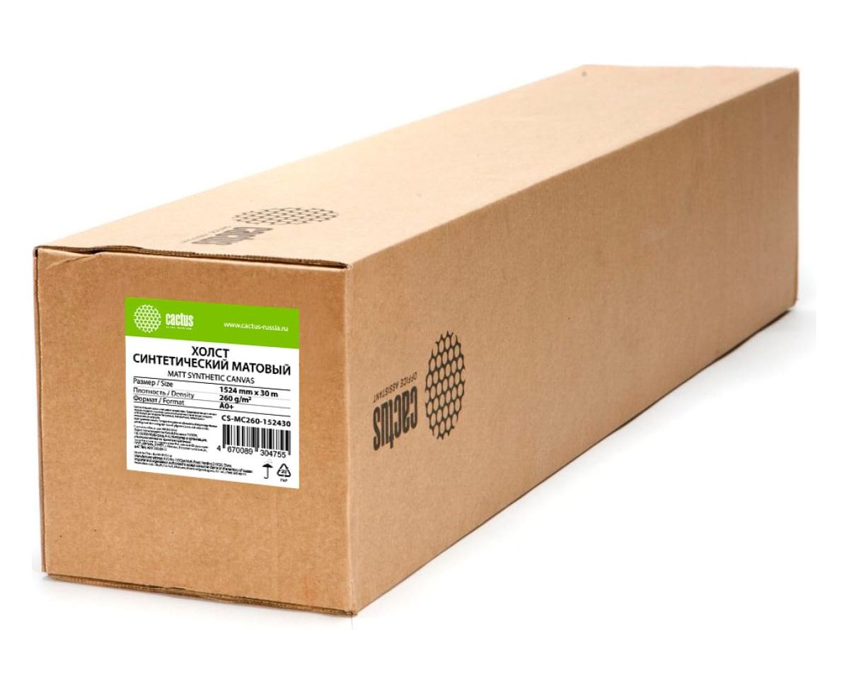 Холст Cactus CS-MC260-152430 A0+ 1524мм-30м/260г/м2/белый матовое синтетика для струйной печати