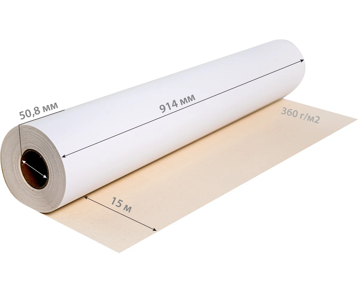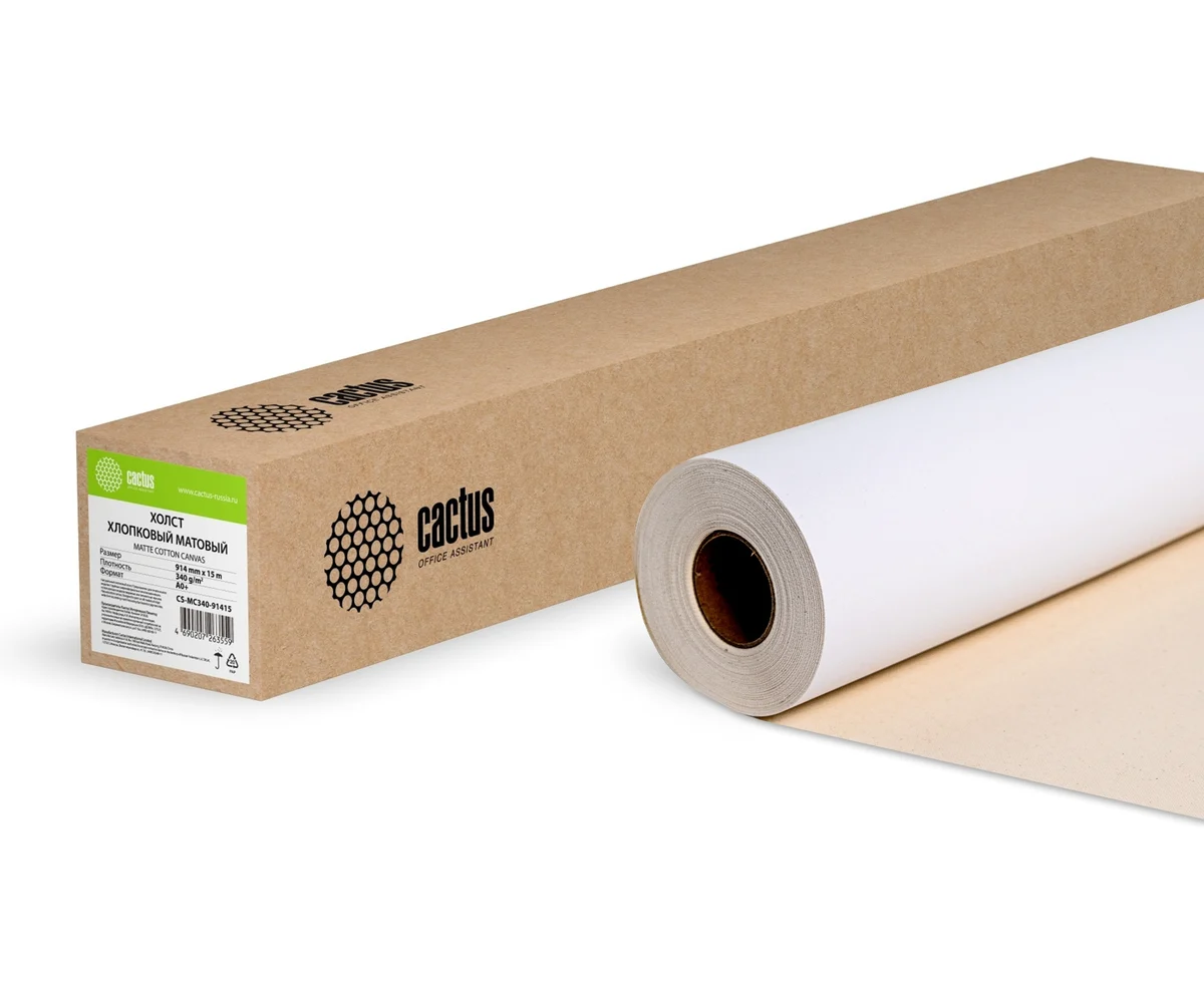 Холст Cactus CS-MC340-91415 914мм-15м/340г/м2/белый хлопок для струйной печати втулка 50.8мм (2")