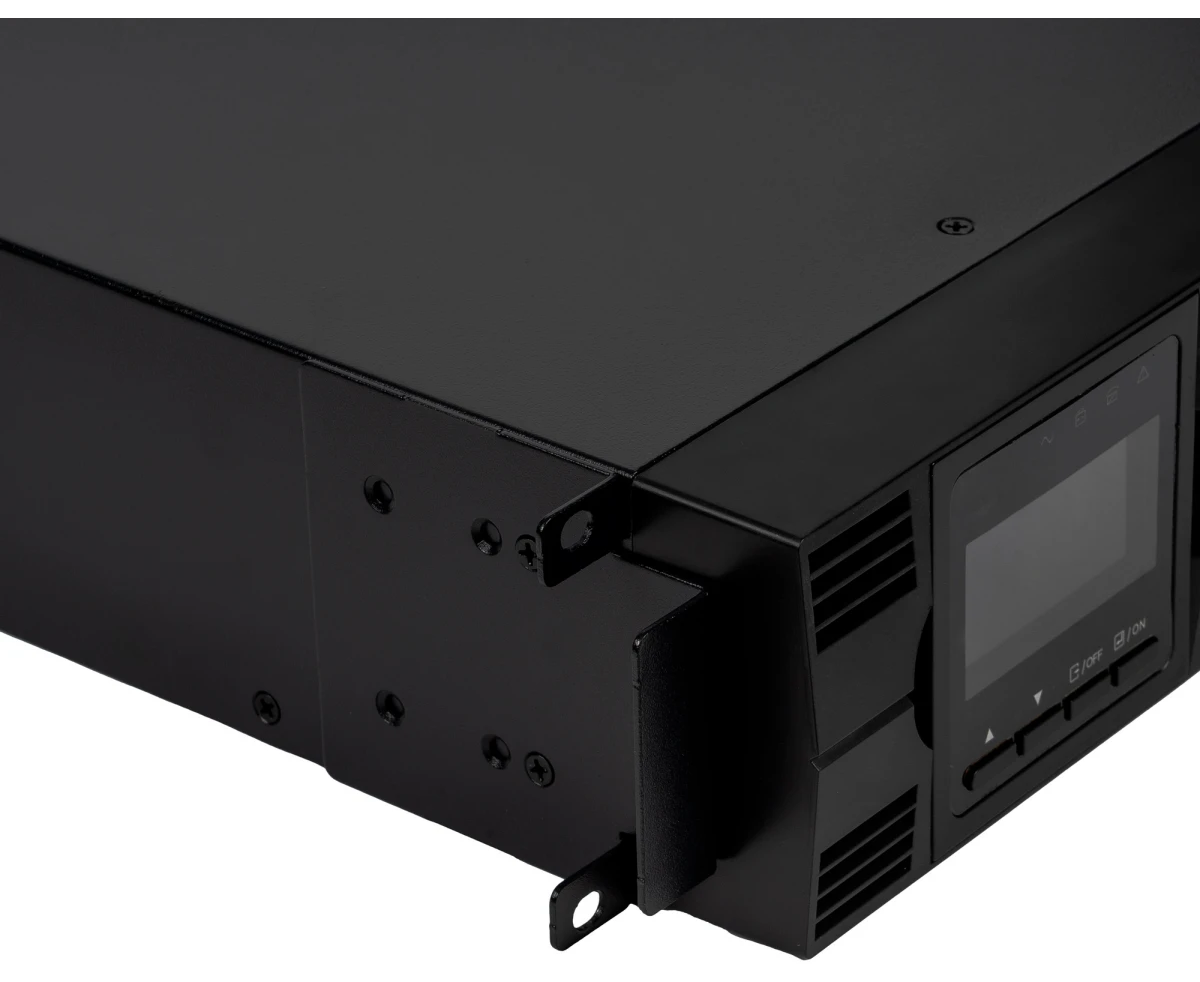 Управление и мониторинг удобно осуществлять с помощью информативного жидкокристаллического экрана на лицевой панели. Для интеграции в систему управления доступны встроенные интерфейсы: Ethernet, RS-232 и USB, а также специальный слот для установки дополнительной SNMP-карты, позволяющей осуществлять удаленный контроль по сети. Устройство выполнено в классическом черном цвете, имеет компактную высоту 2 стандартных юнита для монтажа в стойку и отличается умеренным уровнем шума около 55 децибел. Функция холодного старта позволяет запустить оборудование от батарей даже при полном отсутствии сетевого напряжения, что может быть критически важно в нештатных ситуациях.