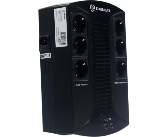 Raskat VS-850VA — это оптимальное решение для тех, кто ценит надежность и простоту использования. Он обеспечивает стабильное электропитание, защищает технику от перепадов напряжения и позволяет продолжить работу или корректно завершить процессы при отключении электричества. Благодаря продуманной конструкции и набору защитных функций этот ИБП станет незаменимым помощником в доме или офисе.