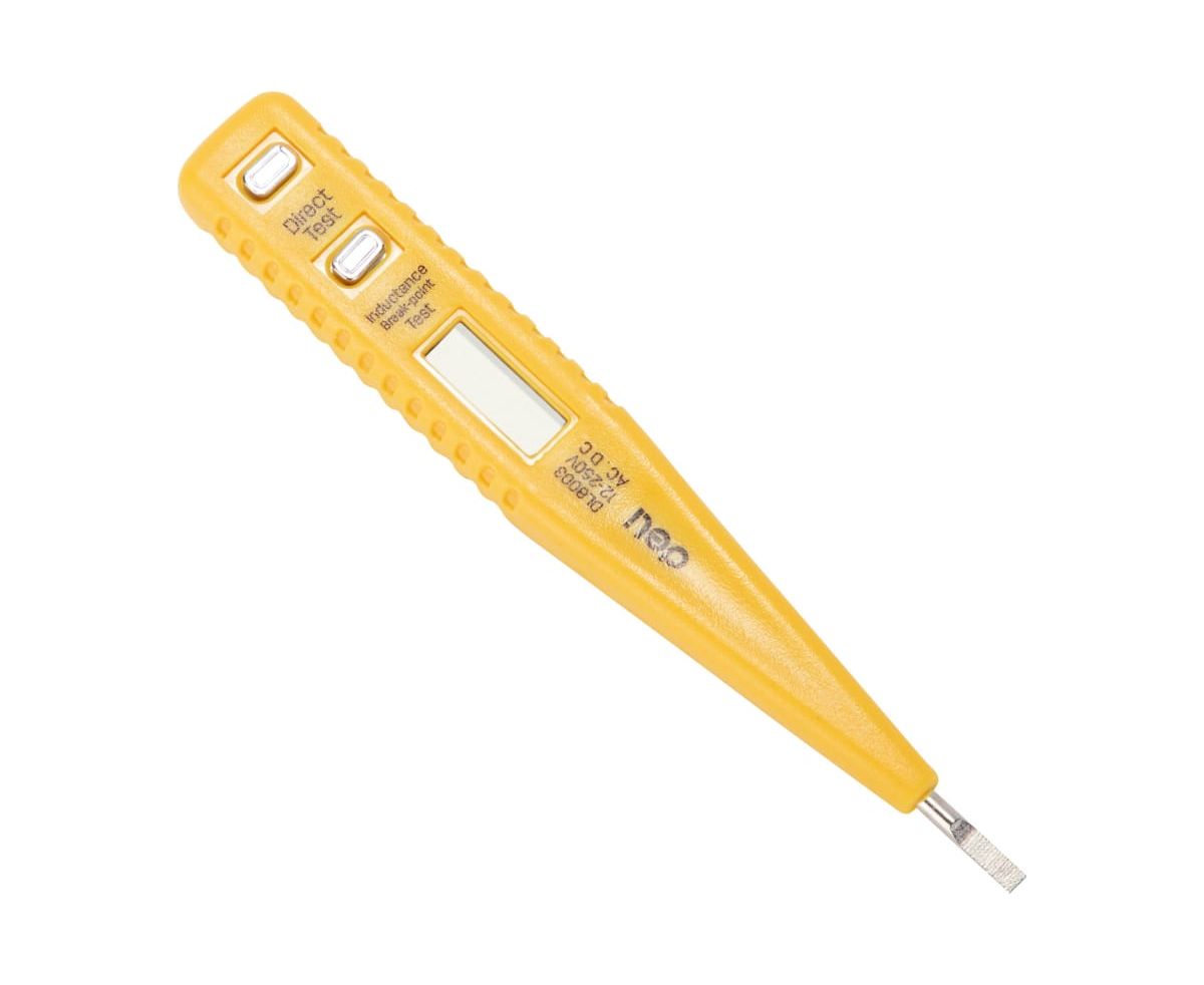 Индикаторная отвертка-тестер напряжения представляет собой цифровой тестер для определения наличия электрического тока в электрических сетях контактным способом, а также проверки целостности электрических цепей, электрических лампочек, предохранителей, проводов и наличия электромагнитного излучения. Оснащён дисплеем и не требует элементов питания для работы.