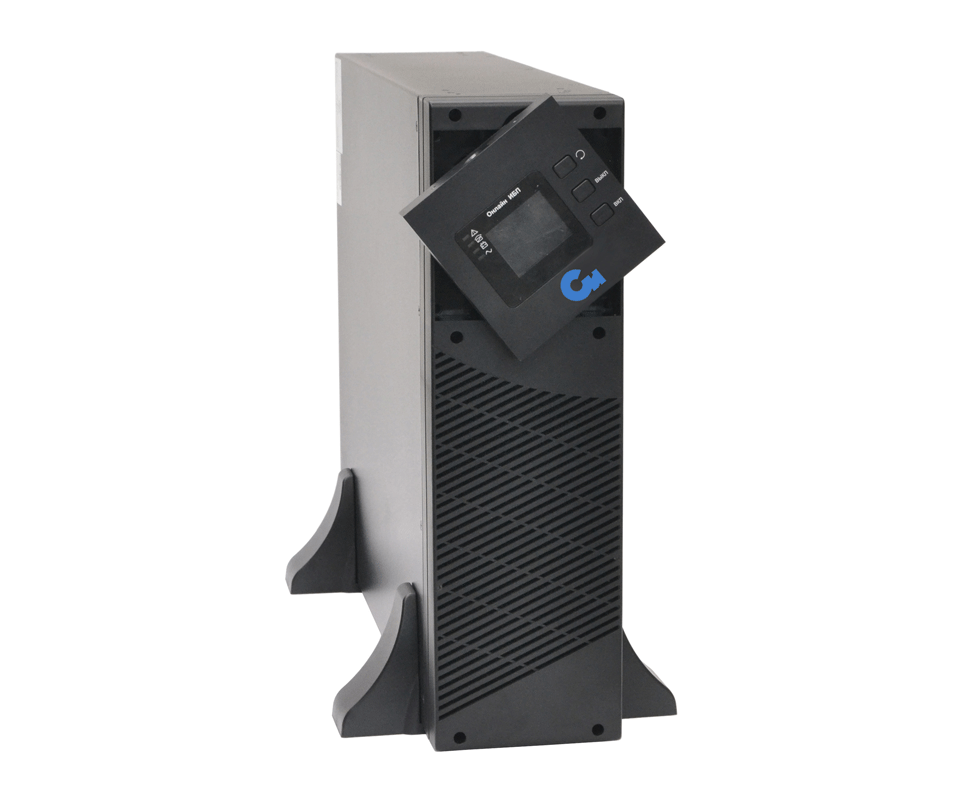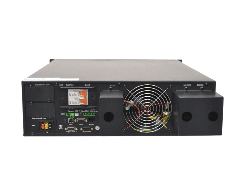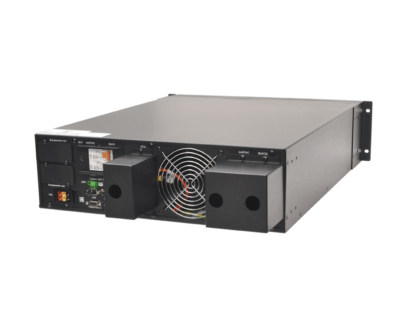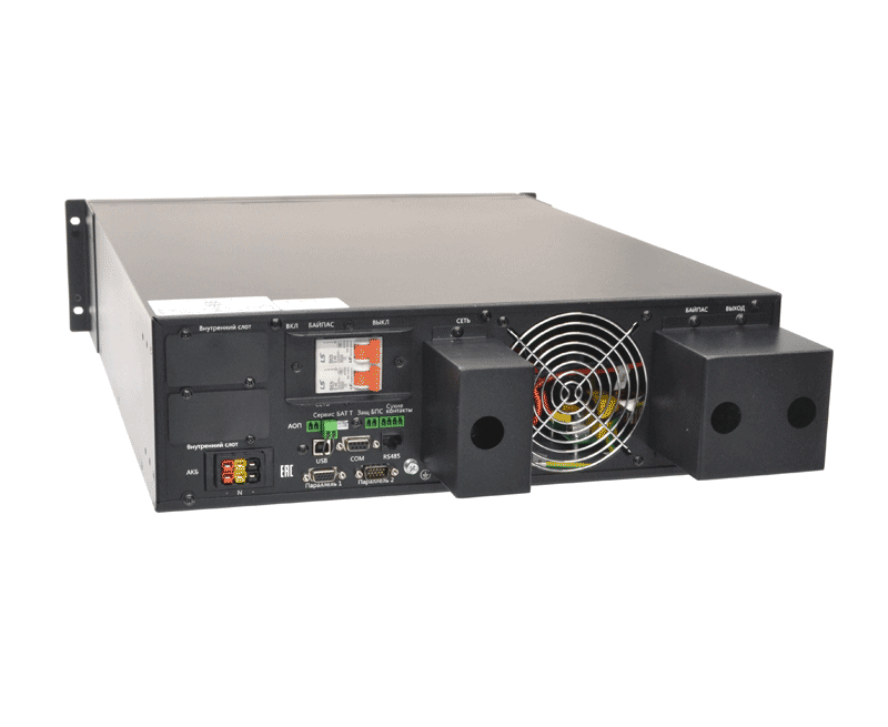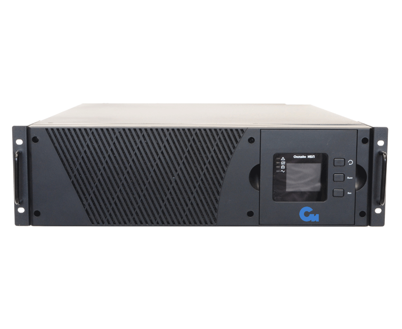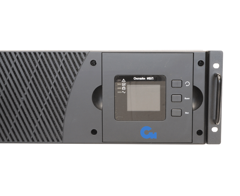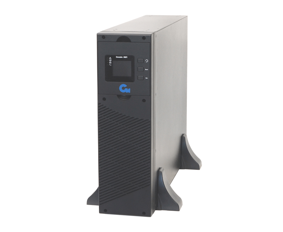 Онлайн ИБП СИПБ10КД.9-11/БПС двойного преобразования полной мощностью 10 кВА для установки в 19'' стойку или на пол с раздельным вводом байпас и цветным ЖК-дисплеем. Выходной коэффициент мощности 0,9. Параллельная работа до четырех ИБП. Два внутренних слота для установки карт управления. Аккумуляторы во внешних батарейных блоках для удобства монтажа и замены.