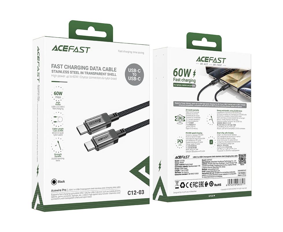 ACEFAST C12-03 60 Вт кабель для зарядки с USB-C на USB-C.