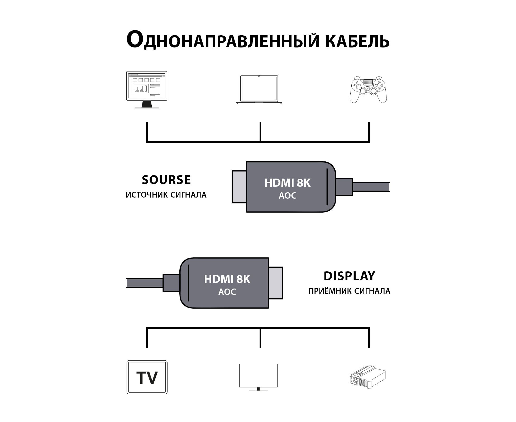Кабель AOC HDMI 2.1 отличается от младших версий пропускной способностью до 48 Гбит/c, поддержкой передачи изображения с расширенным динамическим диапазоном HDR 4:4:4 в формате 8K с частотой до 120Hz, видео Ultra HD и сверхчистой 3D-графикой, благодаря чему вы получите потрясающую четкую картинку и яркие цвета на большом экране. Использование оптического кабеля уменьшает риск возникновения электромагнитных и радиопомех. Данный кабель полностью совместим с портами HDMI более ранних версий.