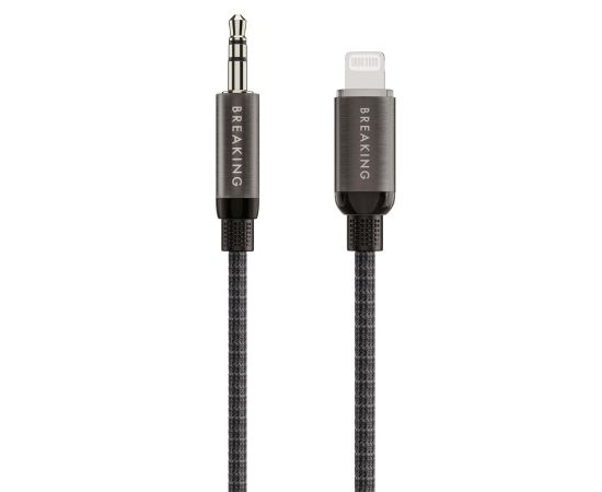 Кабель AUX Breaking Graphite, Lightning - AUX, соединяющий разъем Lightning с аудиовыходом формата AUX, предназначен для подключения совместимых мобильных устройств (например, iPhone) к автомобильной акустике, домашним стереосистемам или другим устройствам с входом AUX.
