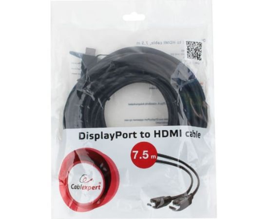 Кабель Cablexpert CC-DP-HDMI-7.5M DisplayPort--HDMI 20M/19M 7.5м черный экран пакет