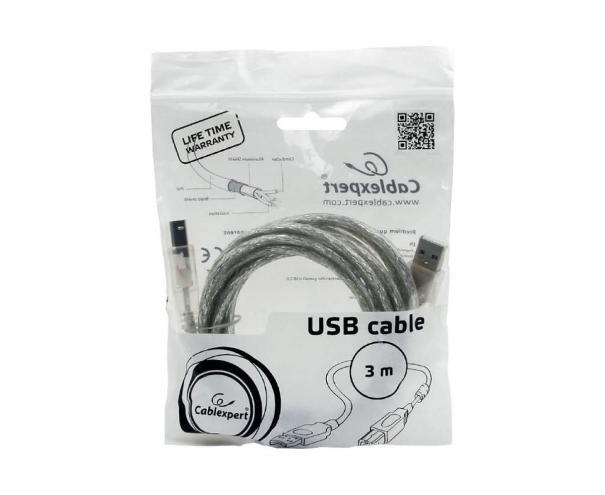 Технические характеристики Cablexpert USB 2.0 Pro AM/BM, 3м, экран прозрачный CCF-USB2-AMBM-TR-10