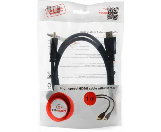 Технические характеристики Cablexpert HDMI 1м, v2,0, 19M/19M, черный, позолоченные разъемы, экран, пакет CC-HDMI4-1M