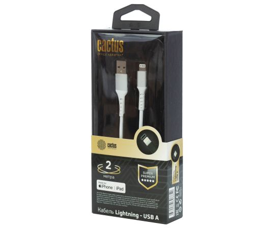 Кабель Cactus CS-LG.USB.A-2 USB m-Lightning m 2м белый блистер