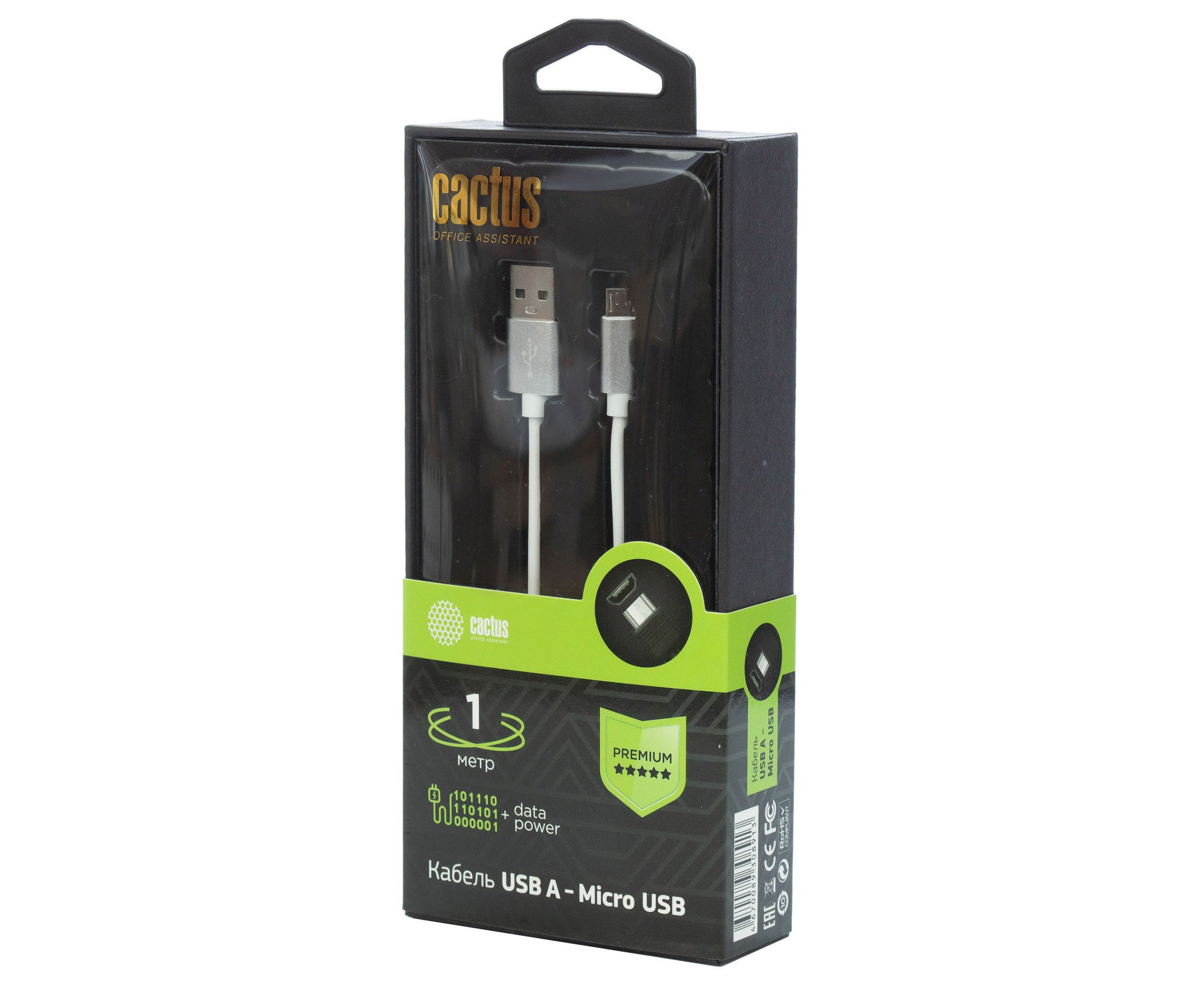 Кабель Cactus CS-USB.A.USB.MICRO-1 USB Type-C m-micro USB m 1м белый блистер