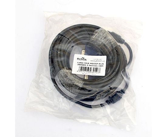 Кабель DeTech VGA M-M 30AWG 2 ferrites 10M