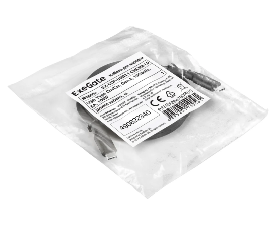 Кабель для зарядки ExeGate EX-CCP-USB3.1-CMCM2-1.0 EX294783RUS USB Type Cm/Cm Gen.2 10Gbit/s 5A 100W 1м