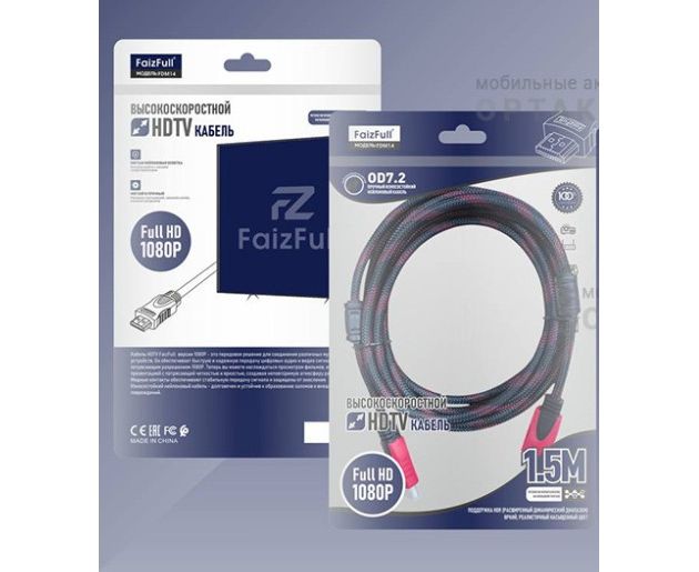 Кабель HDMI FaizFull FDM-14 1,5м V1.4 FullHD тросовый OD7.2