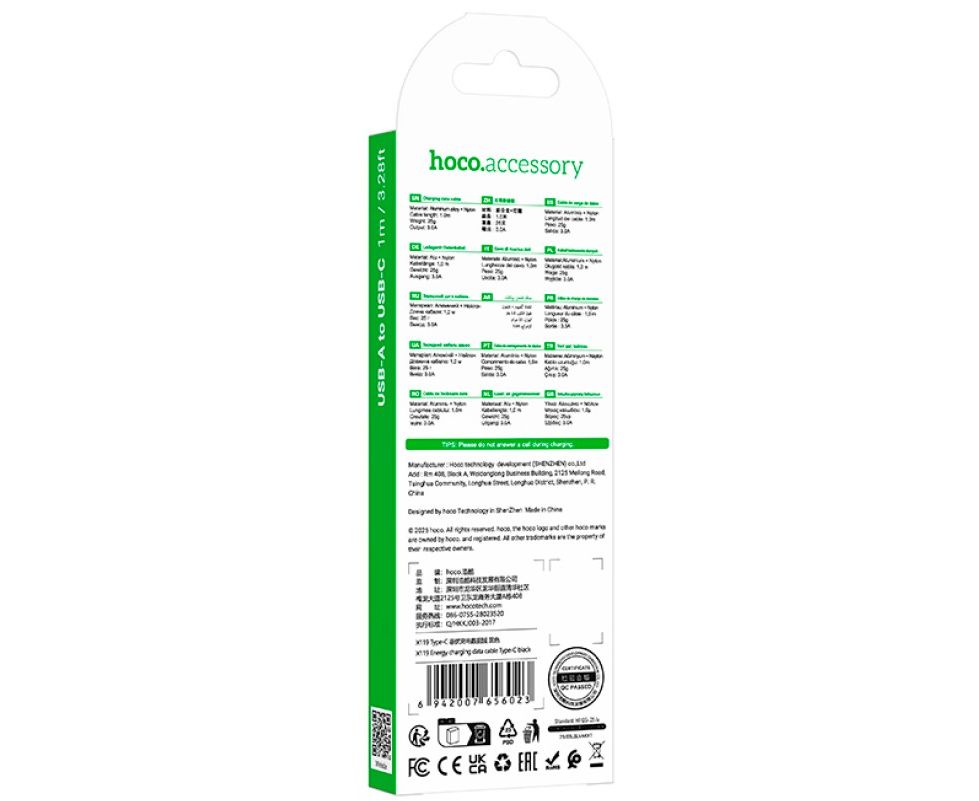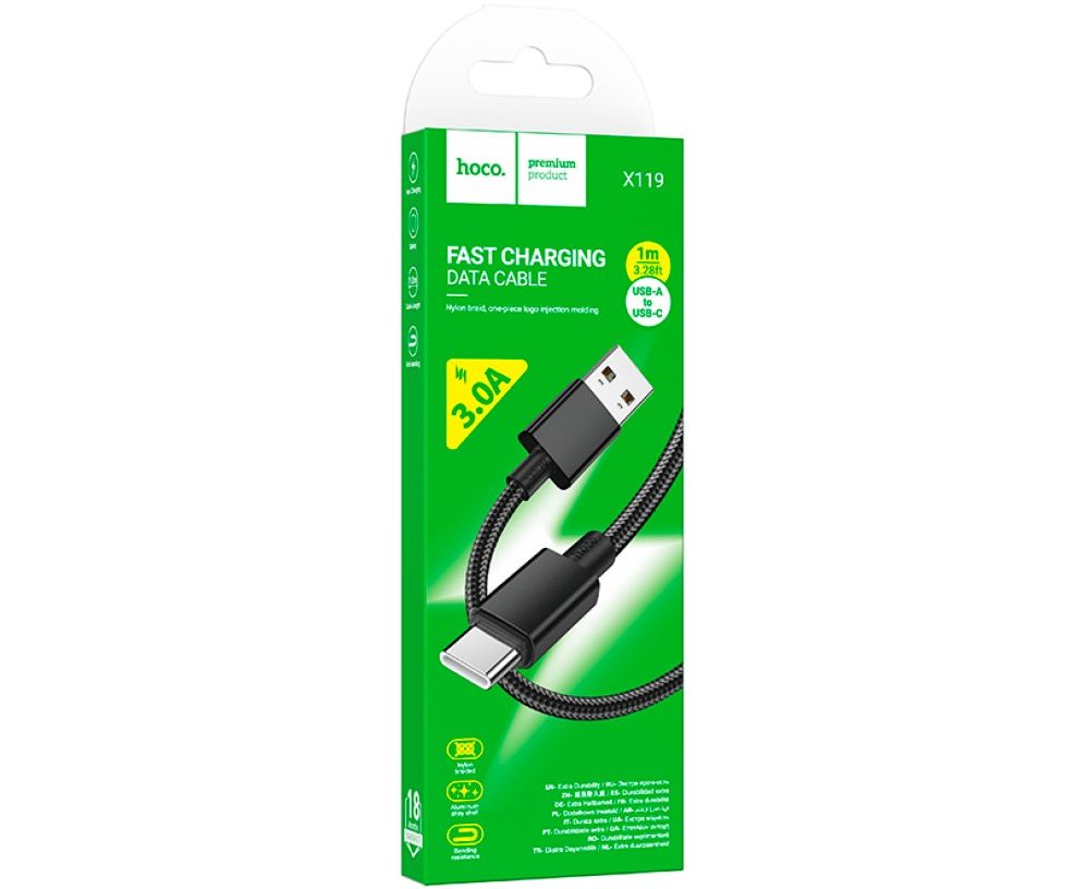 Кабель HOCO X119/ USB Type-C/ 1m/ 3A/ Черный