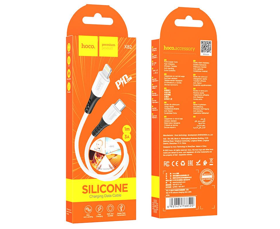 Кабель Hoco X82 iP PD Silicone charging data cable - White