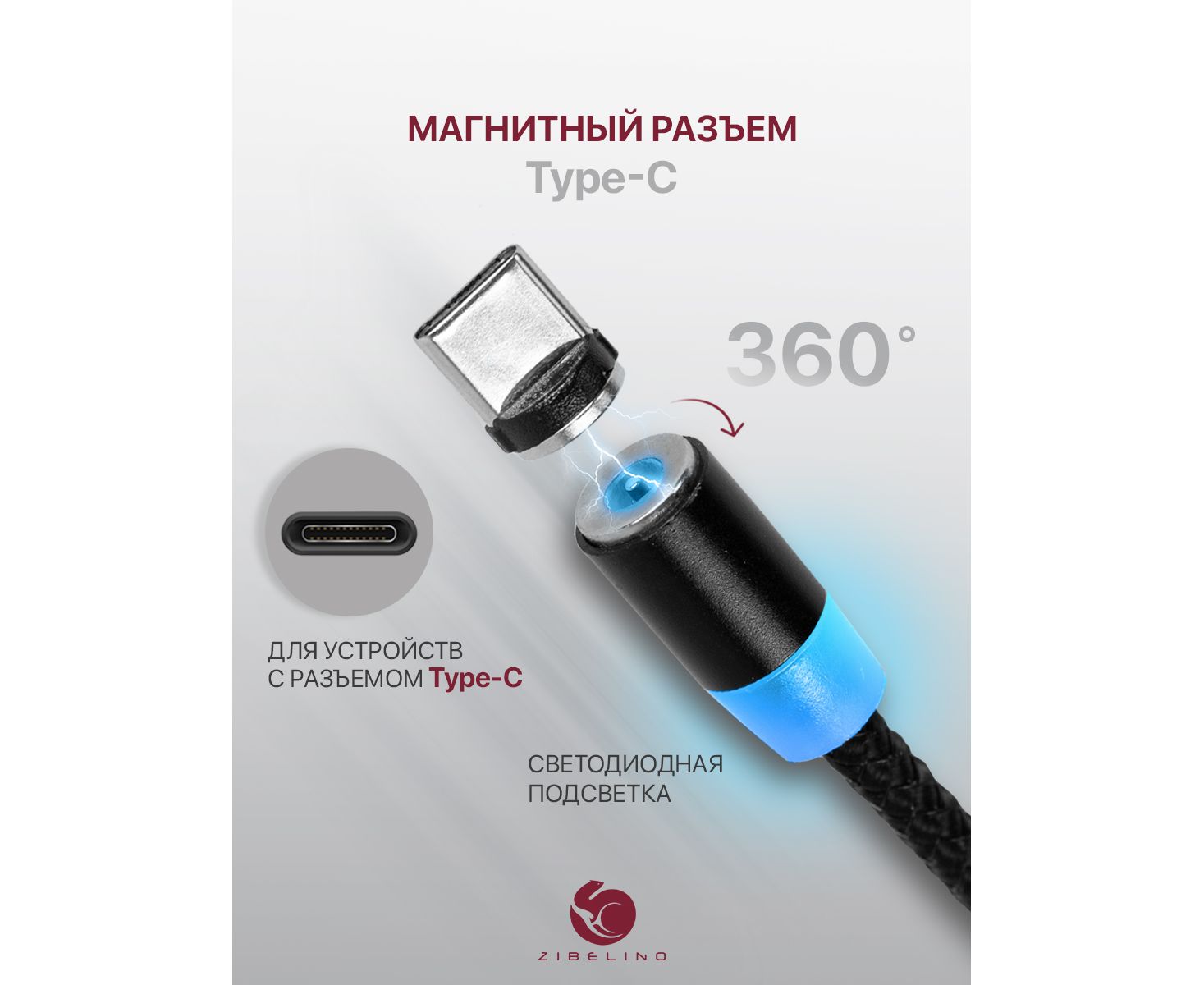 Магнитный кабель Type-C ТМ Zibelino состоит из провода, разъема с портом USB и магнитного коннектора Type-C. Магниты притягиваются друг к другу на расстоянии до 5 сантиметров, тем самым обеспечивается надёжное соединение телефона с зарядным устройством. Преимущества использования магнитного кабеля очевидны: снижение риска выламывания порта разъемом, уменьшение износа контактов порта и разъема. Замена портов в современной технике является наиболее частой причиной обращения в сервис. Небольшая толщина коннектора органично смотрится с телефоном, защищая гнездо от влаги и засоров. Незаменимая вещь в автомобиле и путешествиях. Нейлоновая обмотка позволяет избежать разломов кабеля при сгибах и при использовании на морозе.