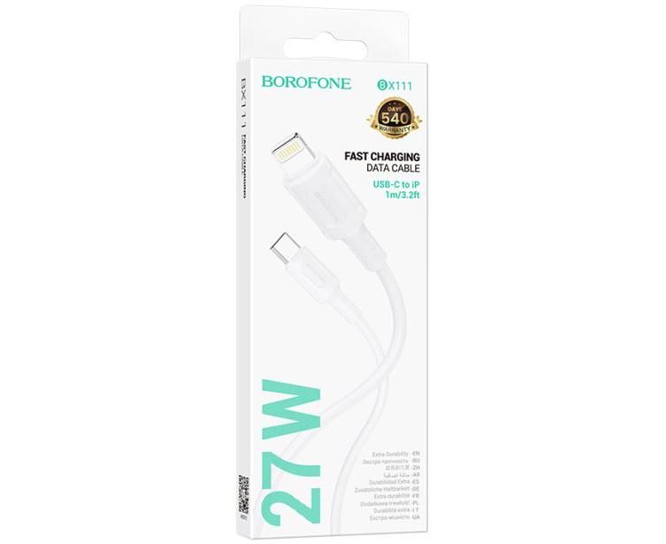 Кабель BOROFONE BX111/ PD Type-C-Lightning/ 1m/ 27W/ Нейлон/ Белый