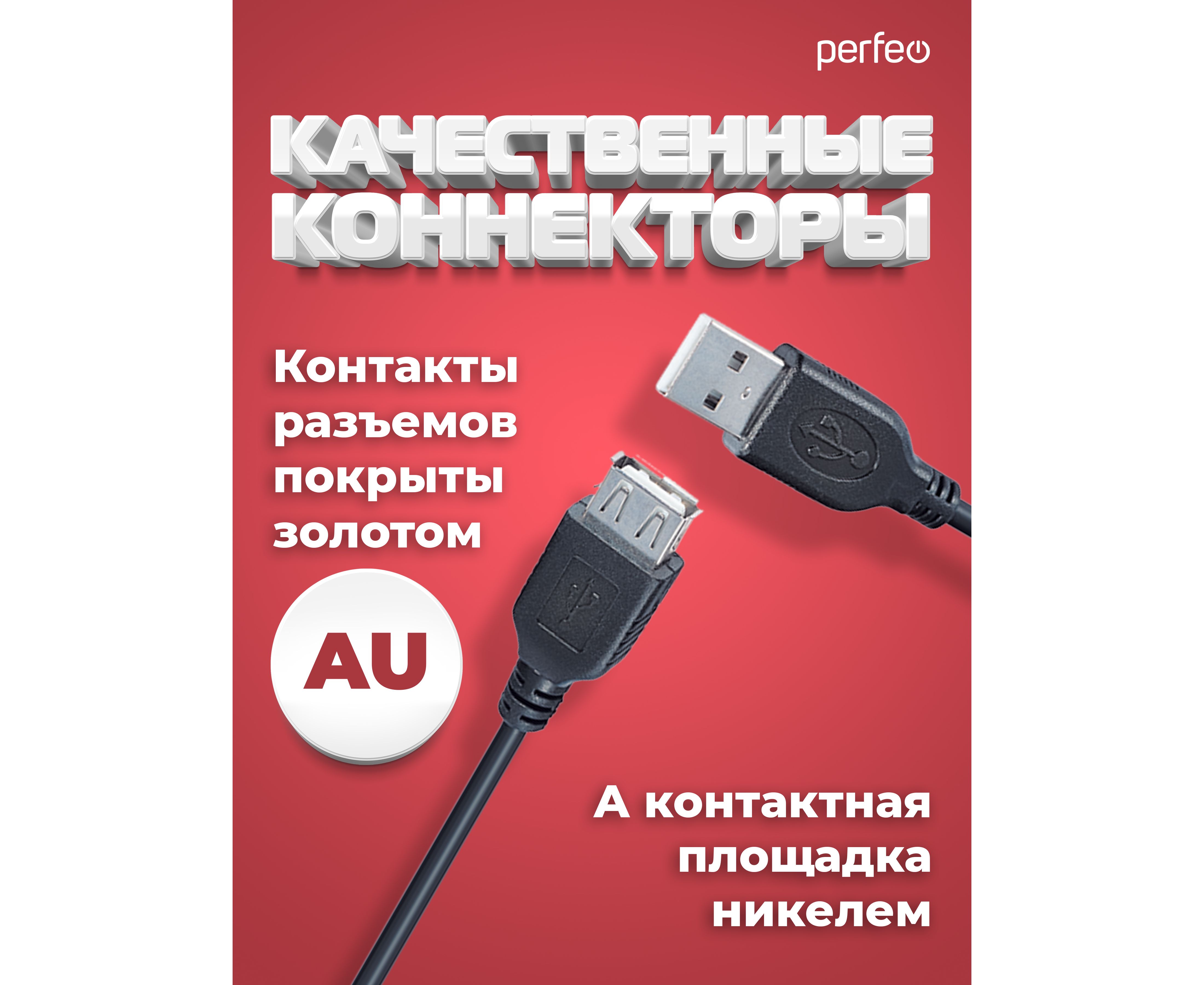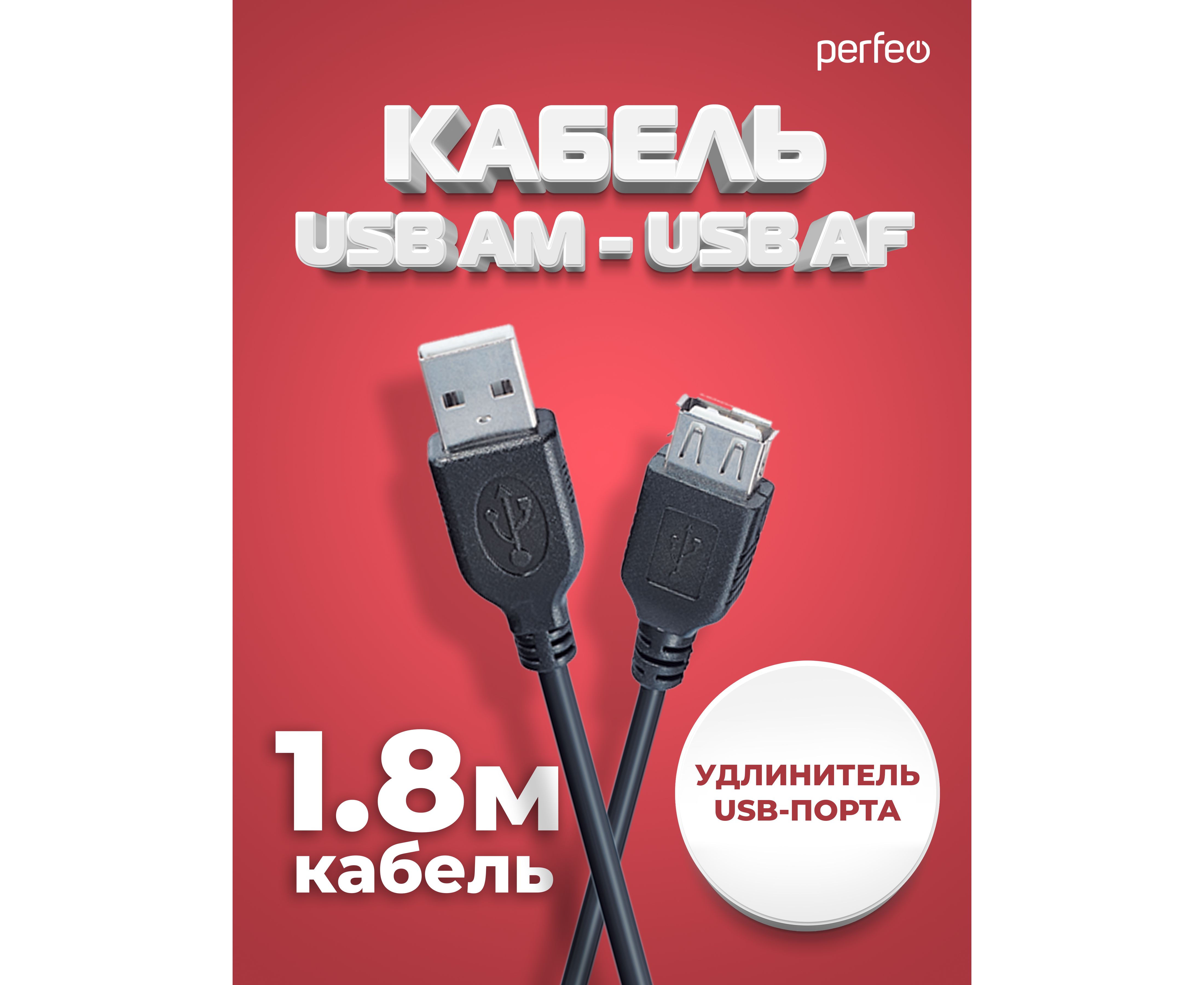 Кабель PERFEO USB2.0 A вилка - А розетка, длина 1,8 м. (U4503)