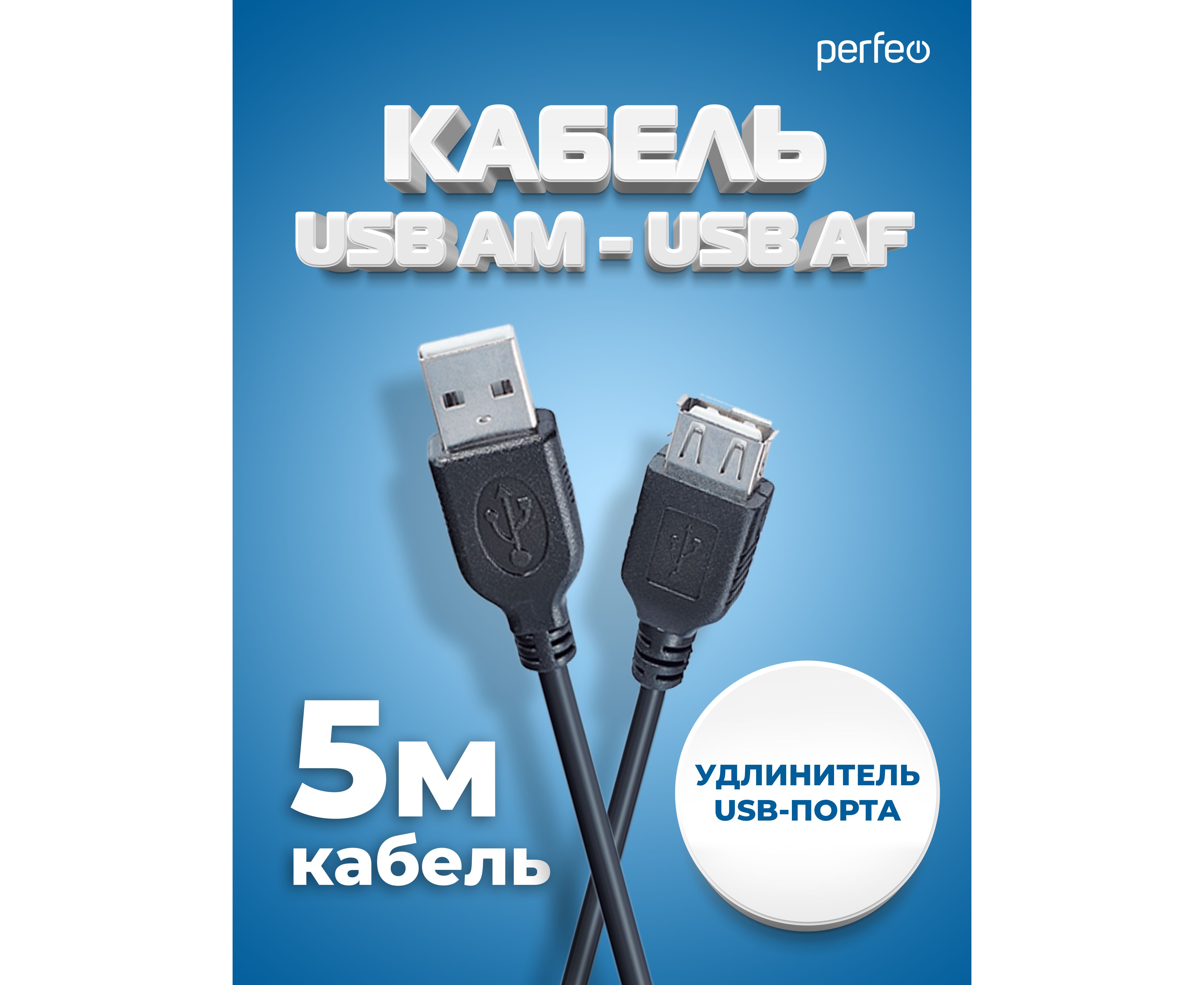 Кабель PERFEO USB2.0 A вилка - А розетка, длина 5 м. (U4505)