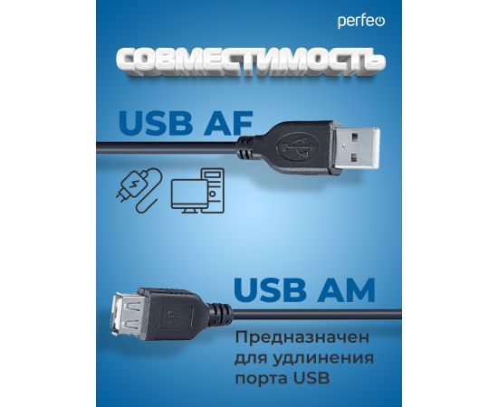 Кабель PERFEO USB2.0 A вилка - А розетка, длина 5 м. (U4505)
