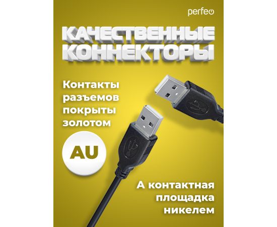 Кабель оснащён разъёмами USB 2.0 (am) и USB 2.0 (am), изготовлен из качественных материалов и обладает прочностью и долговечностью. Использование при изготовлении качественных материалов обеспечивает высокую скорость передачи сигналов и стабильную связь между электронными устройствами. Стоит отметить и более чем выгодную стоимость кабеля USB Perfeo, что делает его доступным для любого пользователя.