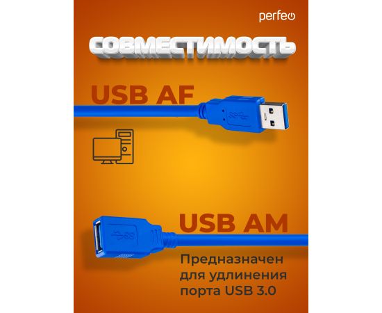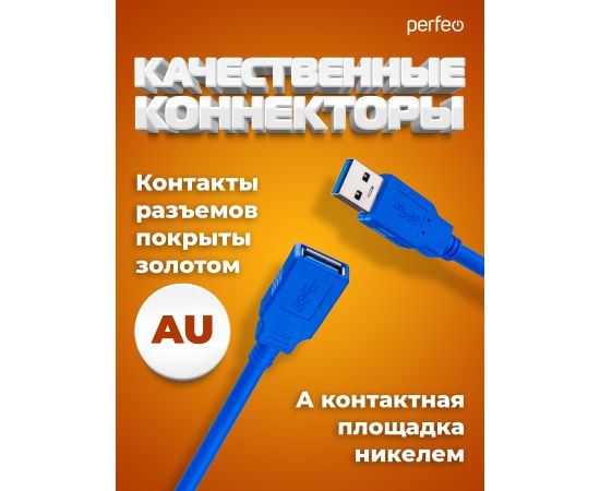 Кабель PERFEO USB3.0 A вилка - A розетка, длина 1,8 м. (U4603)