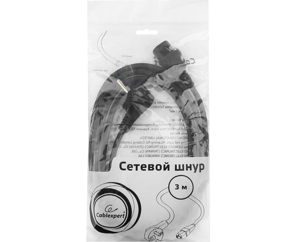 Кабель питания Cablexpert PC-186-1-3M Schuko- C13 3x1кв.мм 3м черный
