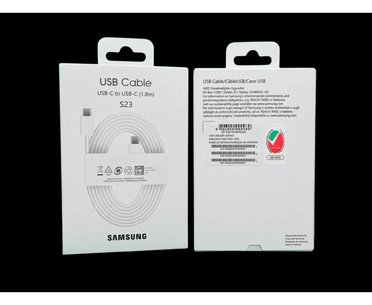 Кабель Samsung S23 USB Type-C - USB Type-C 1.8 m,( EP-DW767 ) Белый