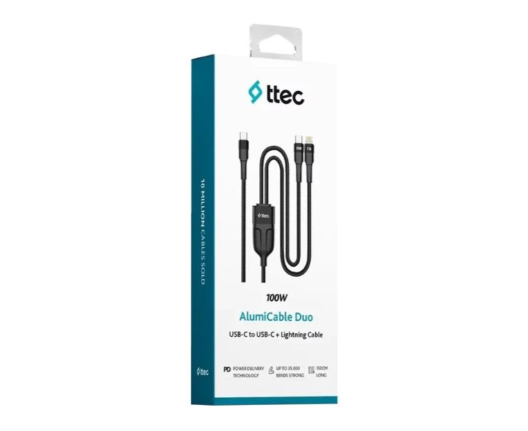 Кабель TTEC 2DK56S AlumiCable Duo USB-C To USB-C&Lightning Fast Charge 100W Cable, длина 150см черный