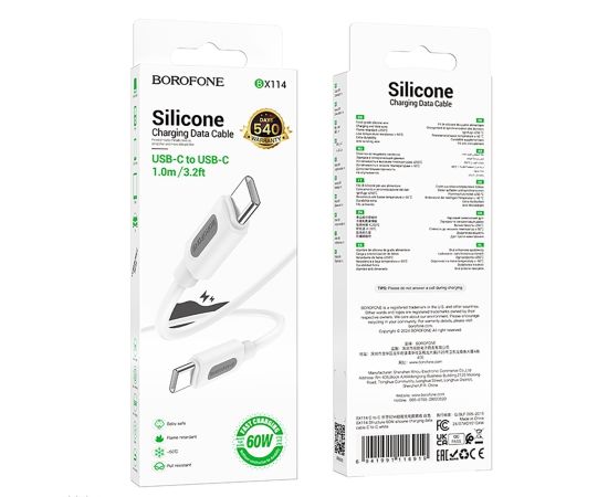 Кабель Type-C - Type-C Borofone BX114 PD 60W 100см 3A (white) (236114)