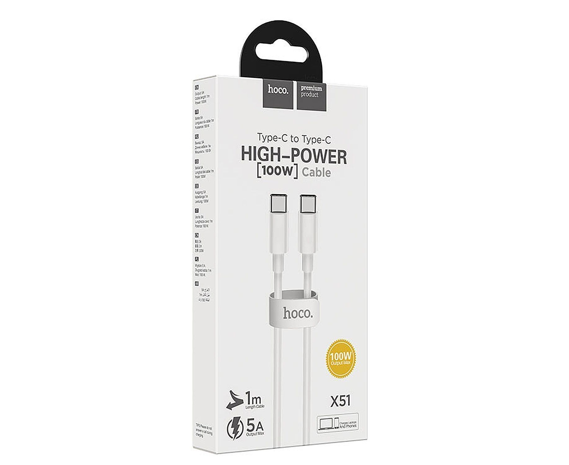 Кабель Type-C - Type-C Hoco X51 High-power 100см 5A (white) (127829)