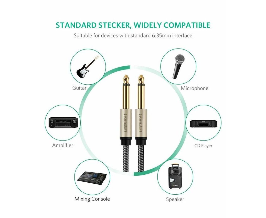 Кабель UGREEN AV128 (10639) 6.5mm Male to Male Stereo Auxiliary Aux Audio Cable 3m Gray