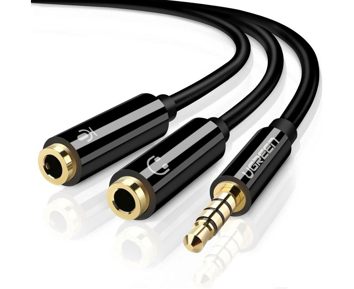Кабель UGREEN AV141 30620 3.5mm male to 2 Female Audio Cable ABS Case Black