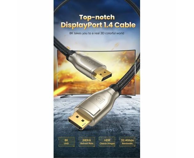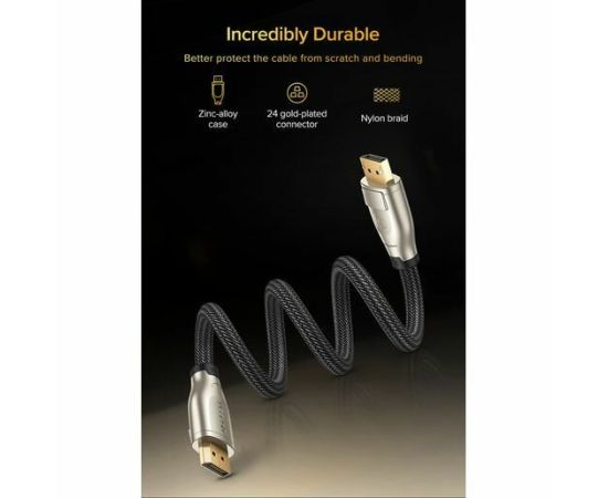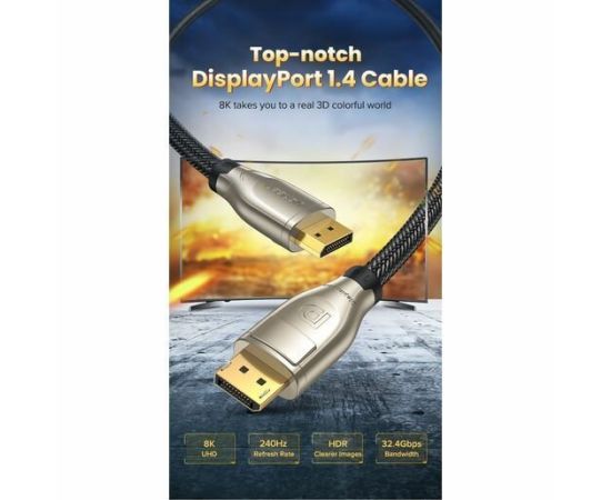 Кабель UGREEN DP112 60842 1.4 DP M/M Round Cable Zinc Alloy Shell with Braided 1m Black