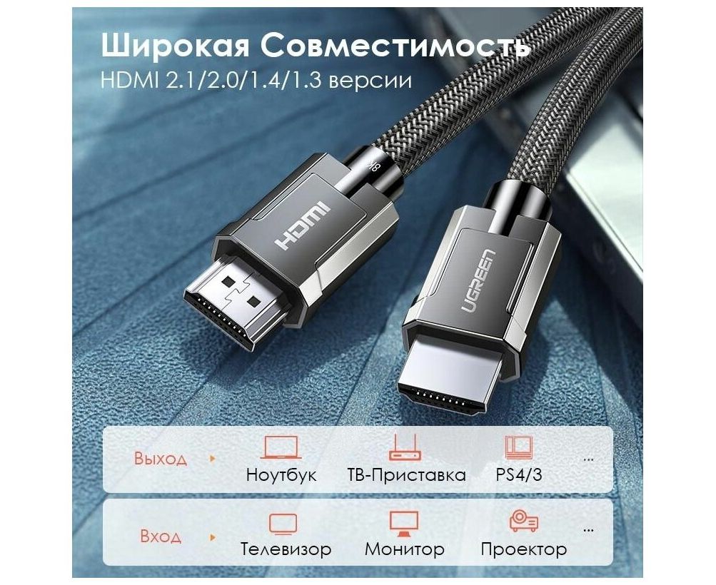 Кабель UGREEN HD135 70320 8K HDMI 2.1 Male To Male Cable 1.5m Gray