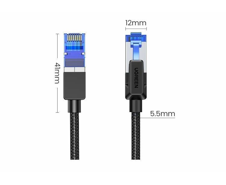 Кабель UGREEN NW153 (30795) Cat8 Classⅰf/FTP Round Ethernet Cable With Braid 10m Black