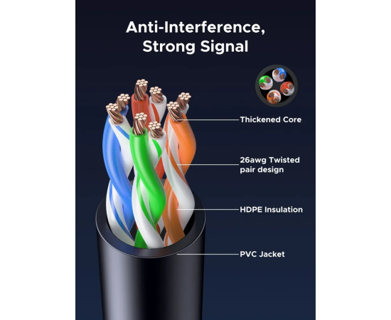 Кабель UGREEN NW315 (55154) Cat6A UTP Ethernet Cable 0.5m Black