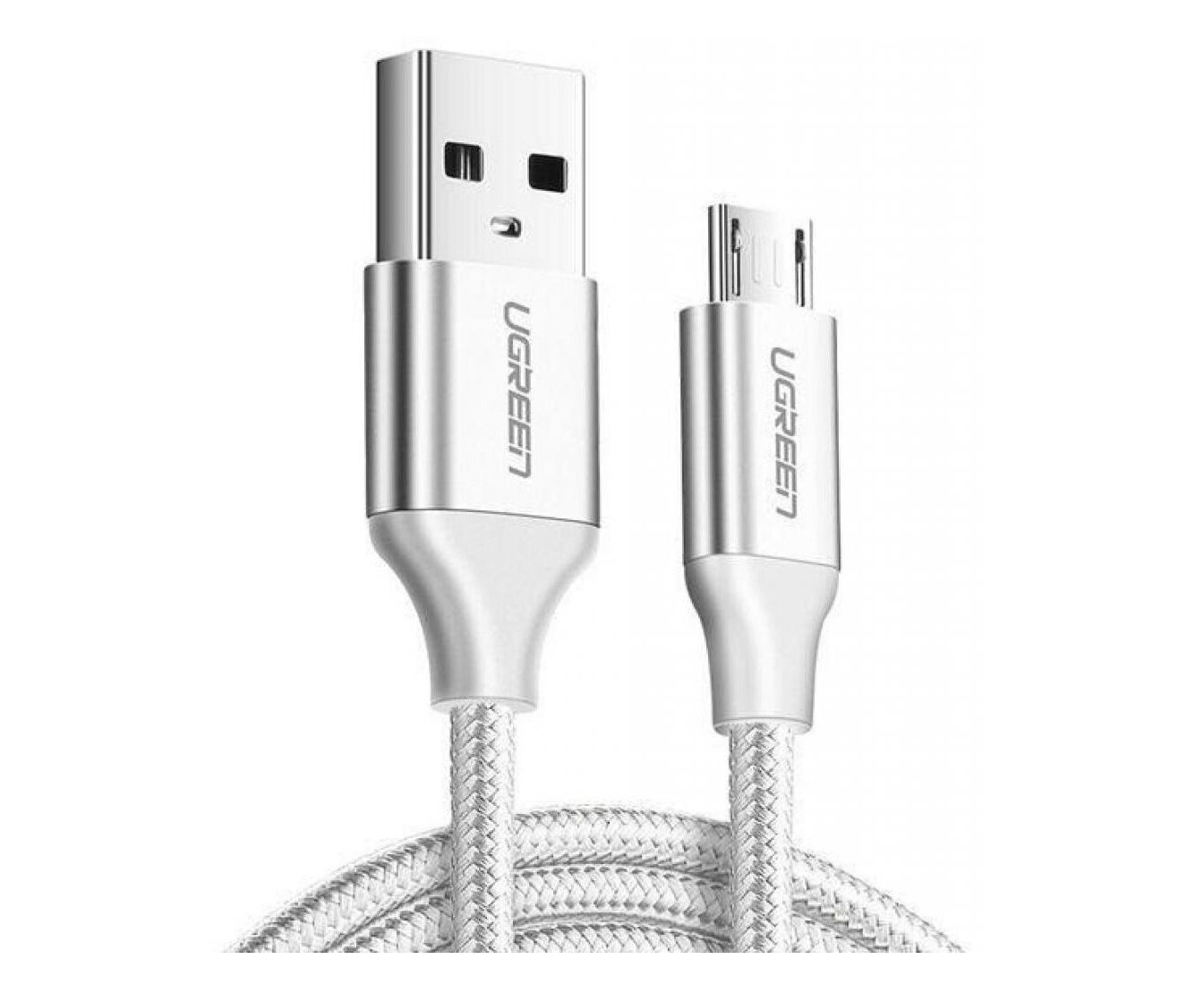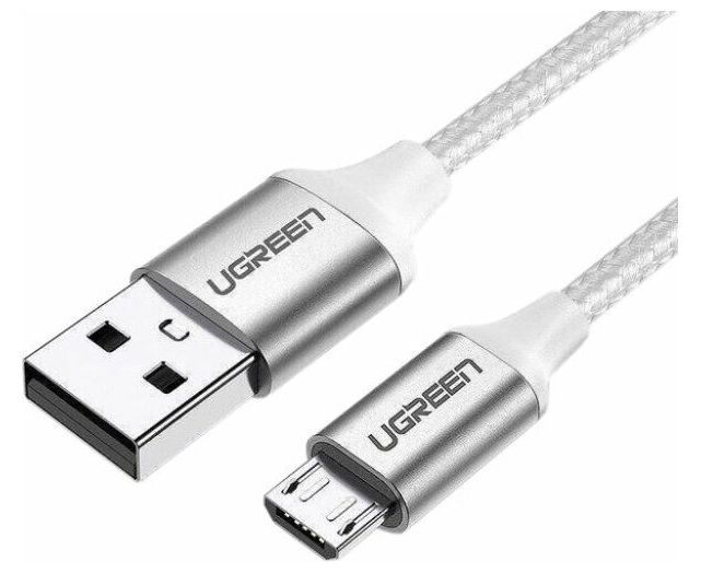 Кабель UGREEN US290 60151 USB 2.0 A to Micro USB Cable Nickel Plating Alu Braid 1m Silver