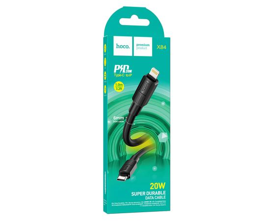 Кабель USB-C HOCO X84 Solid Type-C - Lightning, 2.4А, 20W, 1 м, черный