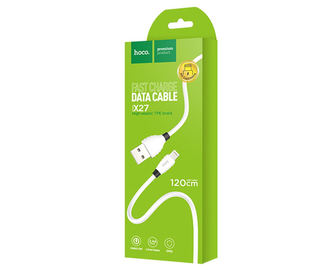 Кабель USB HOCO X27 Excellent USB - Lightning, 2.4А, 1.2 м, белый