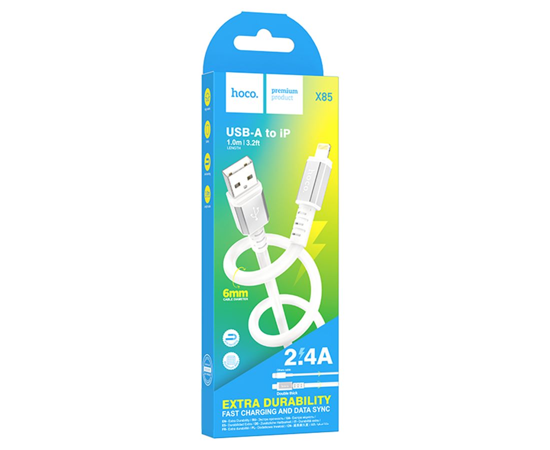Кабель USB HOCO X85 Strength USB - Lightning, 2.4А, 1 м, белый