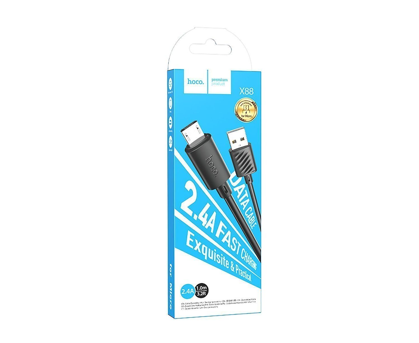Кабель USB - micro USB Hoco X88 100см 2,4A (black) (215586)