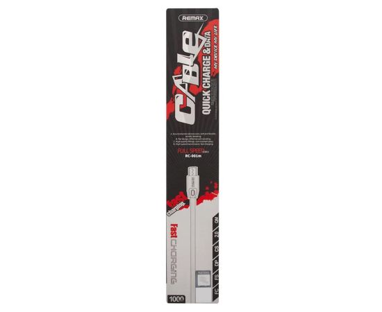 Кабель USB REMAX RC-001m Full Speed USB - MicroUSB, 2.1А, 1 м, белый