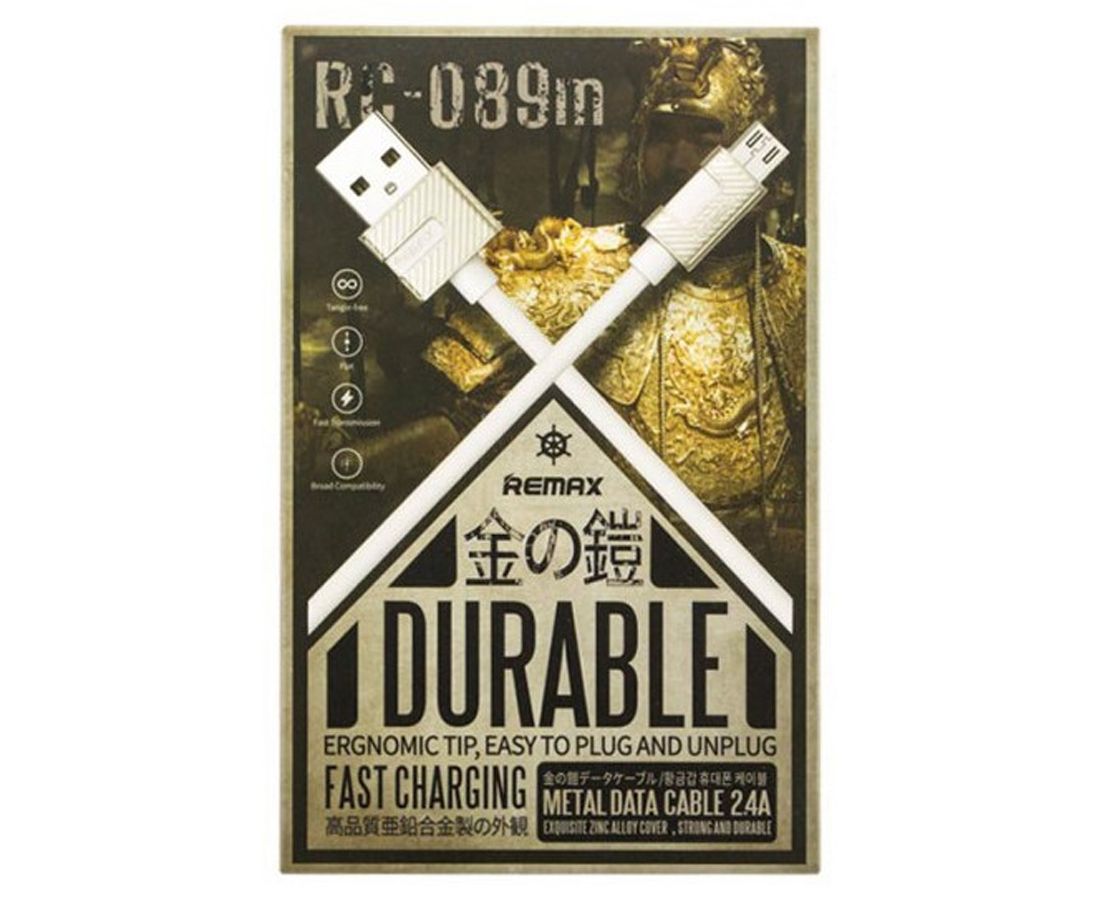 Кабель USB REMAX RC-089m Metal USB - MicroUSB, 2.4А, 1 м, белый